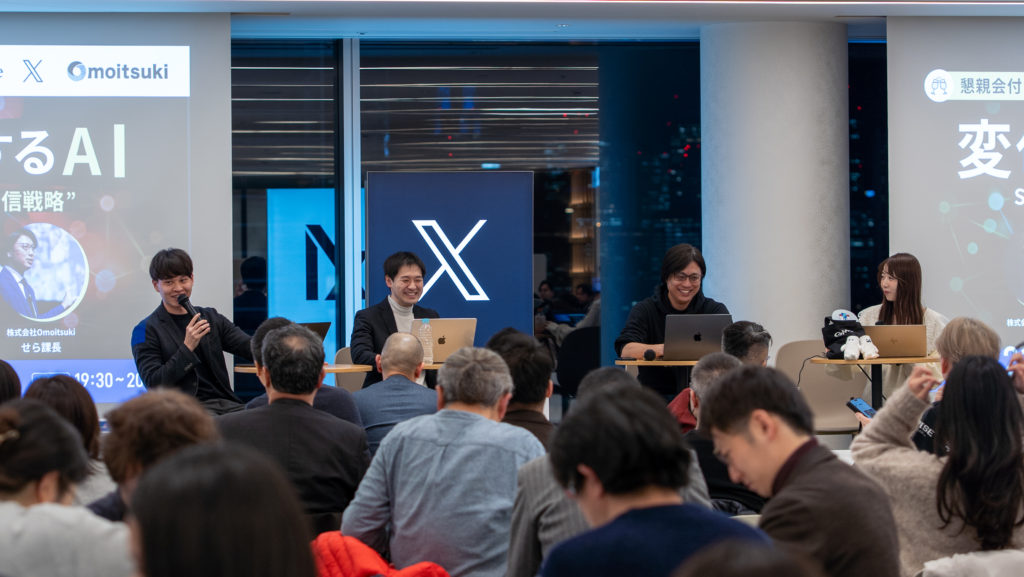 セミナーの前半では、SNS運用のリアルとブランディングについて議論しました。「誰に」「何を伝えて」「どんなイメージを持って欲しいのか」という発信の3原則を起点にし、集客や採用など事業成長に直結する認知の取り方を、実例を交えながら解説させていただきました。続く「変化するアルゴリズム・潮流への向き合い方」では、X Corp. JapanとOmoitsuki代表の幸にて日々の運用における姿勢や判断基準についてディスカッションし、XのAI Grokの活用方法についても触れていただきました。